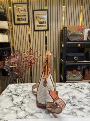 Michael_Kors Logo Signature Satchel Handbag With Dust Bag (Beige)